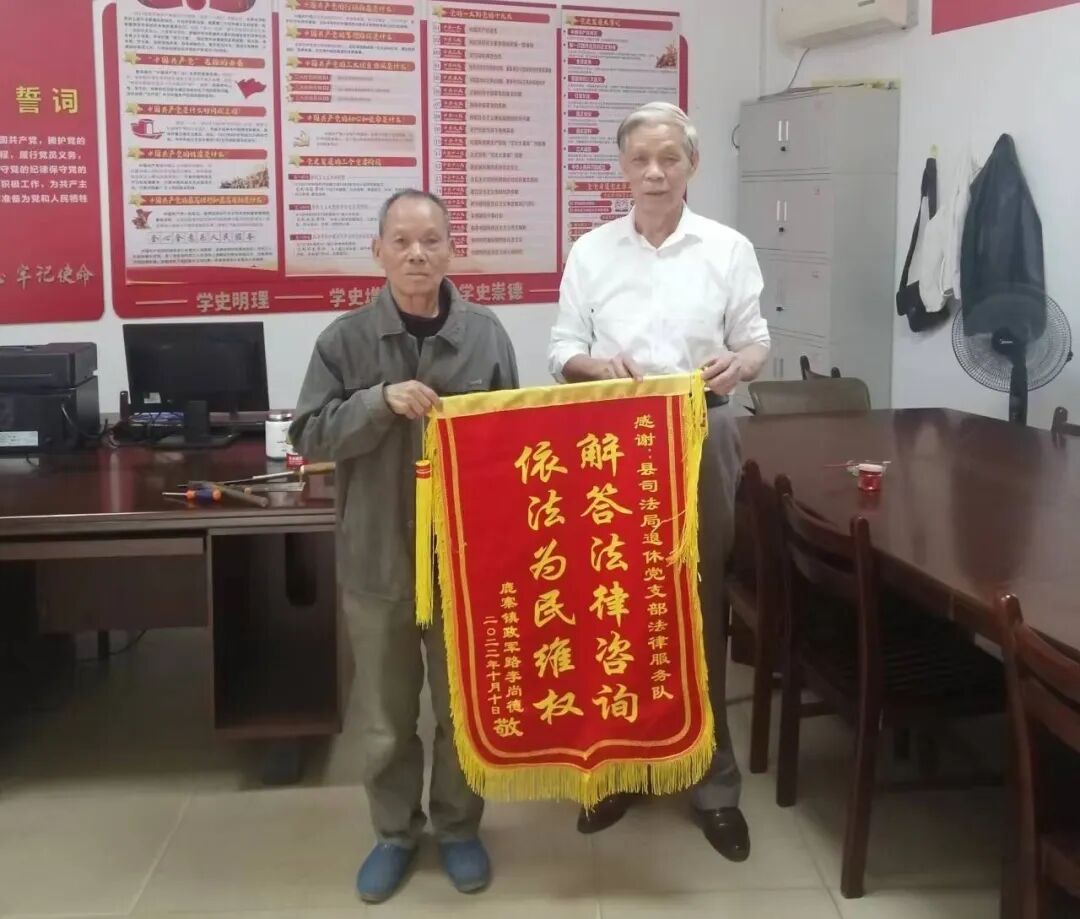 鹿寨县司法局退休党支部以党建为引领,以提高退休老干部幸福感、获得感为目标,探索党建工作新模式,把党建工作与中心工作紧密结合,组织退休干部充分发挥政治优势、法治优势、经验优势,成立鹿寨县首支退休党支部法律志愿服务队,推动司法老干部老有所用、老有所能、老有所为,继续为鹿寨司法行政事业发展出谋划策、增添动力。