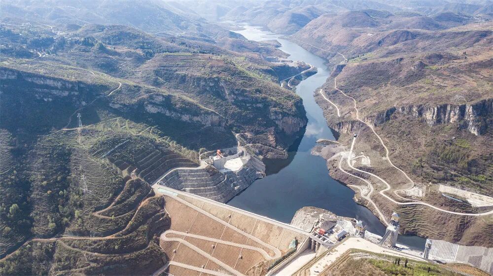 这是在位于乌蒙山区的贵州省纳雍县六冲河畔拍摄的夹岩水利枢纽工程(2022年3月17日摄,无人机照片)。新华社记者 陶亮 摄