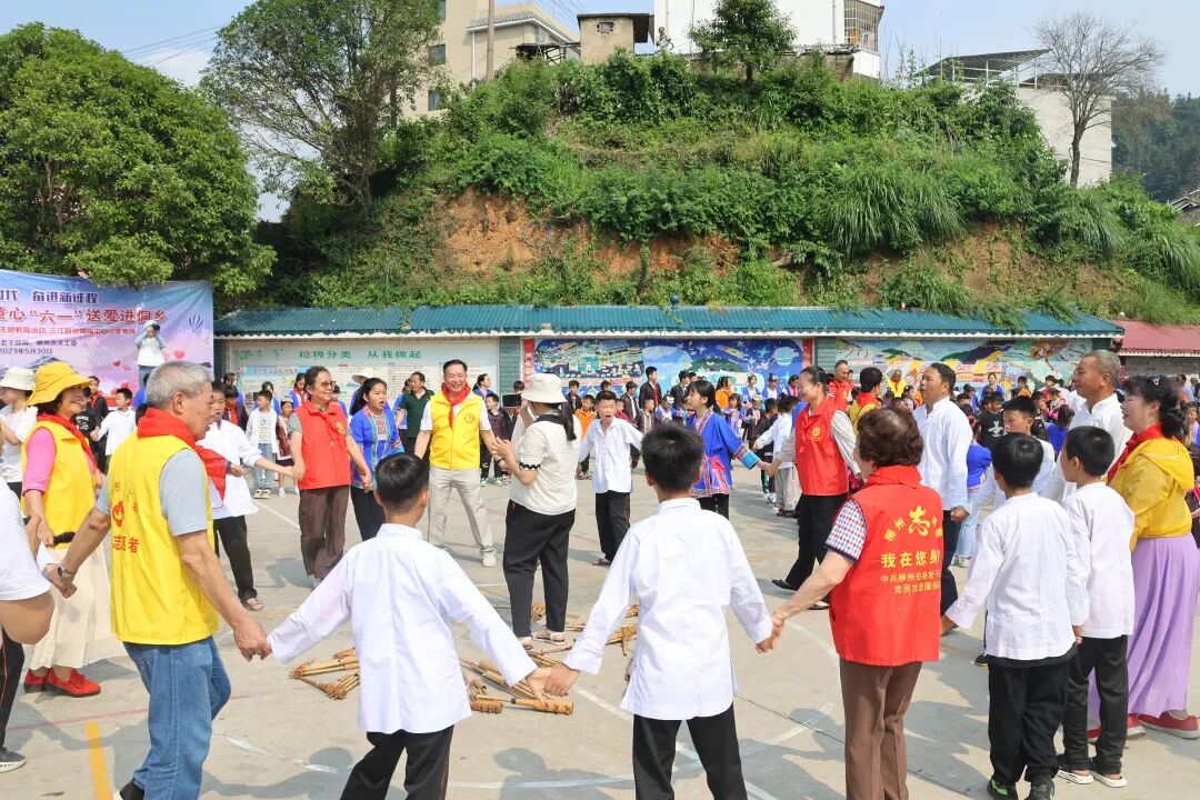 “五老”志愿者们和学生们一起同唱《快乐的节日》,共同迎接节日的到来,老手一起演唱儿歌《挖呀挖》,点燃了现场的热情。学生们为“五老”志愿者们表演《芦笙踩塘》和侗族特色舞蹈《多耶》,用行动由衷地感谢“五老”志愿者们对他们的关心关爱。