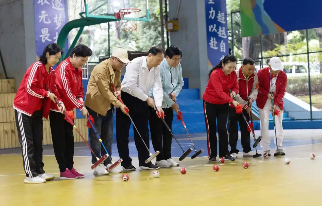 10月20日,由柳州市委老干部局、中共柳州市文明办主办的2023年柳州市“传统节日.重阳节”——“龙城秋韵”杯敬老门球赛在市文昌群众体育中心举行。活动开幕式由市门球协会主席杨继红主持,市委老干部局三级调研员周建宁出席并讲话,中国门球协会委员、广西门协副主席、柳州市老体协主席梁中珣,柳州市门协副主席晏洪、傅韵陶等领导及嘉宾参加活动并为开幕式开球。