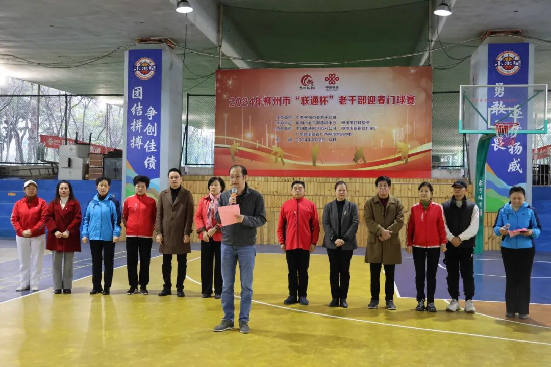 1月12日上午,由柳州市委老干部局主办,市老干部活动中心、市门球协会承办的2024年柳州市“联通杯”老干部迎春门球赛在文昌群众体育中心拉开序幕,市门球协会主席杨继红主持开幕式。