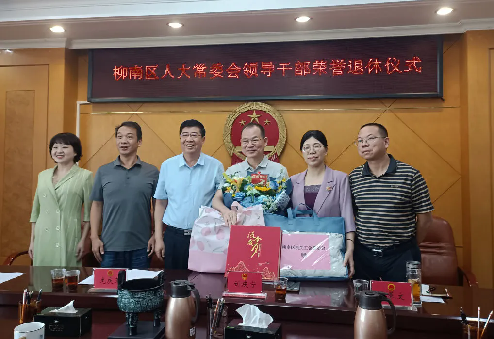 10月17日,柳南区人大常委会为退休干部刘庆宁同志举办荣誉退休仪式。仪式由区人大常委会主任龙庆革主持,区委常委、组织部部长李青,区人大机关全体干部职工参加了仪式。